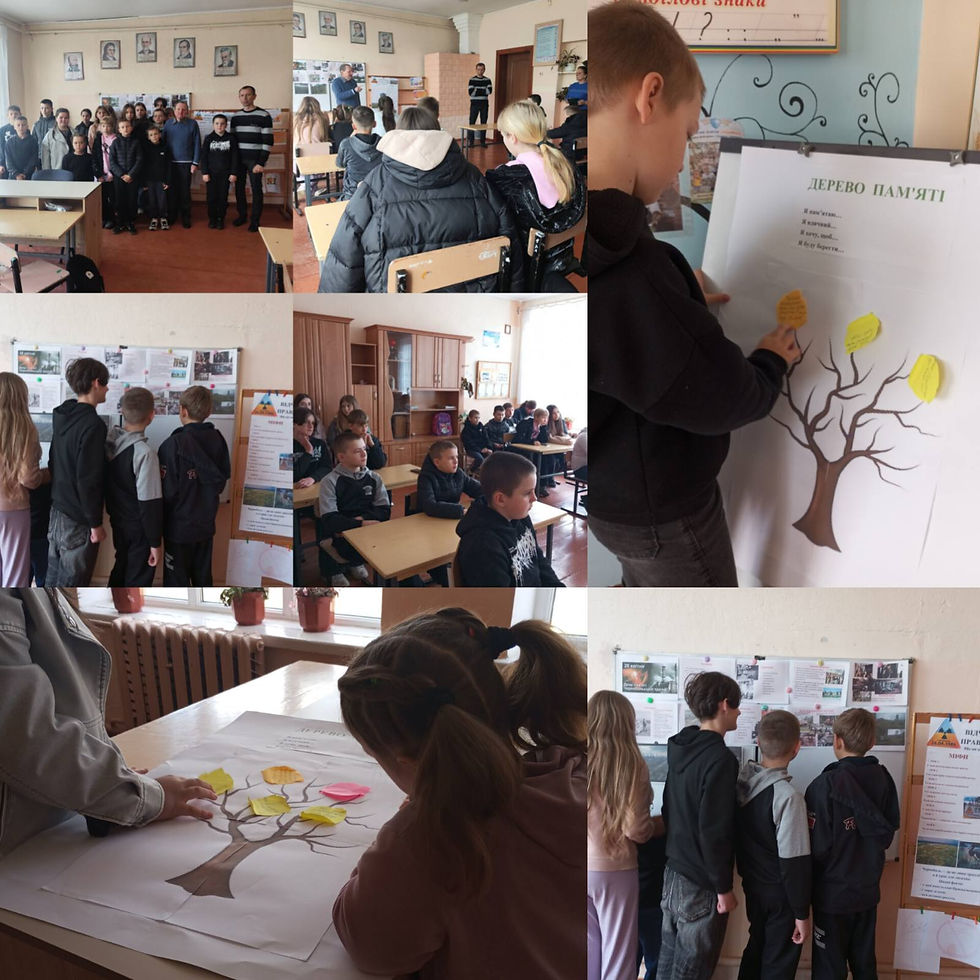 З 20.04 по 24.04 у гімназії відбулися пам’ятні заходи з нагоди 40-х роковин аварії на Чорнобильській АЕС. Для учнів проведено години скорботи,бесіди, оформлено інформаційну зону «Зона відчуження: правда і міфи». Діти дізналися про події 1986 року, героїзм ліквідаторів та наслідки катастрофи. Особливою подією стала зустріч із ліквідатором аварії Чесаком А.К., який поділився власними спогадами та відповів на запитання учнів. Також відбулася акція «Дерево пам’яті», під час якої учні вшанували загиблих і висловили слова вдячності. Проведені заходи сприяли збереженню історичної пам’яті та вихованню поваги до подвигу ліквідаторів.